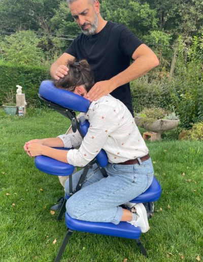Séances de massage Amma assis, rapides (15 à 20 min), habillé et sans huile, directement sur le lieu de travail